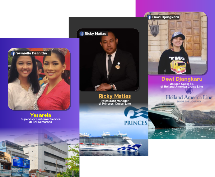 Education business is kind of sustainable business with minimum risk and also support the Goverment vision to make the Human Resourches to be ready in Industry placement. With lot of Hotel , Tourism and Cruise Ship recruitment Indonesian crew Opportunities, we just prepare the best Crew candidates for those industry.